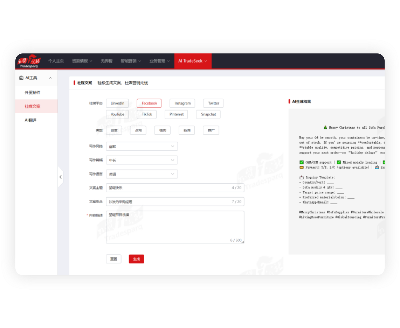 AI 生成多语言邮件、社媒文案、营销话术,突破语言障碍,提高客户反馈率